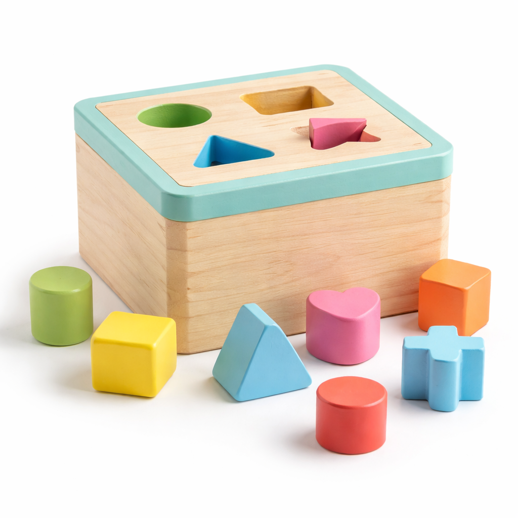 The Wooden Shape Sorter Box is an educational toy designed to develop problem-solving skills, shape recognition, and fine motor coordination through interactive play.